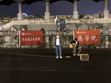 双人吉他弹唱率先出场为同学们带来歌曲《往后余生》,精彩的弹唱深深地吸引住全场人的目光,令人拍案叫绝,掌声不断。接着是高年级员工独唱热门歌曲《岁月神偷》,美妙动听的歌声时而高昂,时而悠扬,令人陶醉,缓解了新生们训练一天的疲劳。最后出场的是舞蹈串烧,充满朝气与青春的节奏,再一次炒热了现场气氛。
