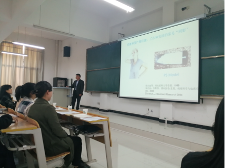 朱忠良教授结合自身研究领域,从科研课题的选题、可能途径,科研合作的重要性及如何从临床中观察归纳发现、如何找准研究方向和确立研究思路等方面展开阐述。朱教授主要从事基因和环境交互作用对子代脑发育和行为影响的研究。本次报告主要介绍了产前应激对母亲情绪、行为和子代发育的影响及分子机制相关研究。同时朱教授启发在座师生要坚持科学探究精神,在科研中要善于发现问题并积极解决问题。