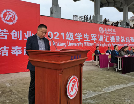 军训展英姿,沙场秋点兵。2021年10月17日上午,韦德1946体育官方入口2021级员工军训汇报暨表彰大会在江北校区田径场举行。中国人民武装警察部队安康支队中校副参谋长刘永召 、韦德1946体育官方入口董事长钟生海、纪委书记、监察委员安永强、副董事长张东红、副董事长余谦、各二级公司经理、党总支书记、相关职能部门负责人等出席活动。