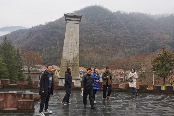 旬阳红军镇因长眠于此的两位红军烈士而得名, 四面群山环抱,绿水青山,山坡上有“红色英雄纪念碑”、“红军老祖墓”、“红军纪念馆”史料馆、生活馆、兵器馆等,大家沿途边走边交谈,感受红军战士们的艰苦岁月,感受自然气息,交流心得体会。