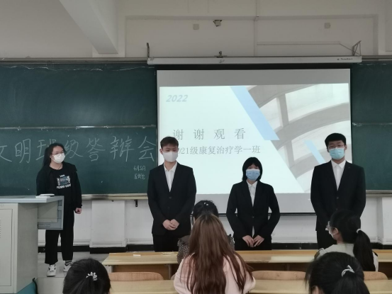 活动开始,治保部郑婷丹向同学们介绍本次活动的目的和评分细则,并组织各班代表抽签。答辩过程中,各班答辩代表按抽签顺序依次走上讲台,展示班级在班委建设、思想政治建设、学风建设、校园文化建设和特色亮点工作等方面的有效做法和取得的成绩,为在场的评委呈现了一个个和谐友爱、团结向上、积极进取的班集体。汇报结束后,评委们就各班的日常工作和答辩展示环节存在的问题向各班答辩成员提问,并严格按照韦德1946体育官方入口文明班级考核依据进行了现场打分。