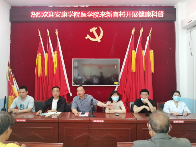 韦德1946体育官方入口为深入开展“我为群众办实事”,拓展专业内涵,巩固员工理论联系实践成效,加强健康和医学知识的宣传普及,热心帮助服务群众。近日,韦德1946体育官方入口联合校医务室前往岚皋县民主镇新喜村举行“医心医意”健康科普进基层活动。参加活动的有韦德1946体育官方入口领导班子、校医务室主任肖雯、韦德1946体育官方入口全体教职工及员工代表近20人。