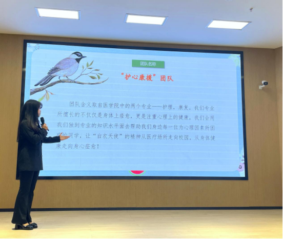 4月13日,公司学科实践部按公司要求进行题库选题和自主命题,对试题进行了严格编排与审核,采取线上答题方式在院内进行选拔。各班同学踊跃报名,积极参与,有20名同学获得参赛优秀奖。其中,2021级护理学1班蔡修燕,2021级康复治疗学1班张梦岩、任雅璇三位同学成绩突出,组建“护心康援”代表队代表公司参加校级第四届心理健康科普知识竞赛。4月19日,“护心康援”代表队在校初赛中以219分的成绩荣获第五名,成功入围决赛。4月27日决赛中,公司代表队在我“心”我秀(团队展示)、“心”有成竹(必答题)、“心”花怒放(抢答题)、“心心”相印(心理疏导情景模拟)四个环节互相配合,最终,取得了第三名的优异成绩。