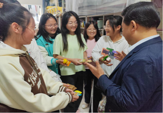 刘连德和桑杰两位老师首先为同学们送上节日的祝福,细心询问同学们节假日日程安排和往返车票购买相关事宜并强调同学们是入学以来第一次返乡,同学们假期出行要注意人身安全、财产安全问题,提高自我保护意识;谨防各类诈骗。随后刘连德询问了同学们近期生活、学习情况并对宿舍安全、卫生问题进行叮嘱,提醒同学们近日天气转凉,注意保暖的同时要加强体育锻炼,保持身心健康。最后为每一位同学送上中秋大礼包,同学们纷纷表示感谢并且对老师和学长学姐们送上节日祝福,同时拿出自己家乡的特产同大家一起分享。