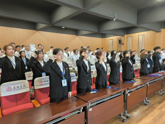 公司党总支书记刘连德宣读《公司第五届团总支员工会聘用文件》,韦德1946体育官方入口团总支书记桑杰宣读《韦德1946体育官方入口员工社团指导老师聘用文件》。在场老师分别为团总支员工会、员工社团负责人颁发聘书。韦德1946体育官方入口团总支副书记黄钰淇带领新一届团总支员工会全体成员进行宣誓。