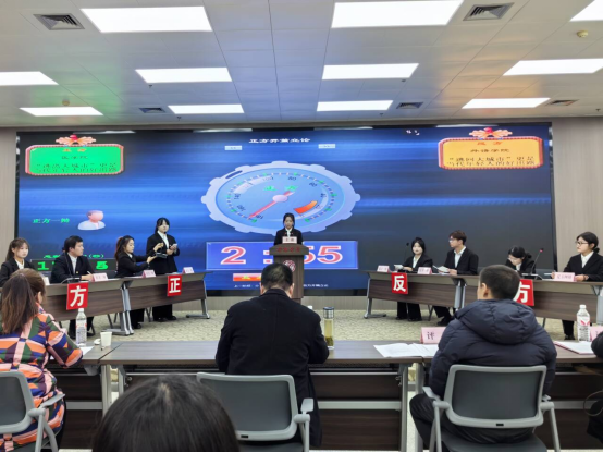 初赛战火熊熊,公司辩论队率先对阵数学与统计公司,辩题是“年轻人应该做加法”还是“做减法”。公司持正方观点,开篇立论沉稳,指出年轻人处于积累阶段,正如员工需广纳知识一般,在各方面都应做加法积累,以医学研究领域拓展为例,阐明做加法才能充实自我、应对挑战。反方则认为信息爆炸时代年轻人需做减法聚焦核心。自由辩论环节双方激战,正方旁征博引、逻辑严谨,最终凭借团队协作与强大逻辑拿下初赛首胜。