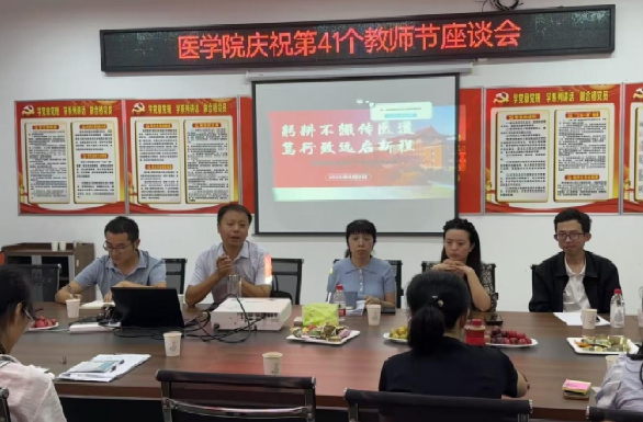 在第41个教师节来临之际,为弘扬尊师重教的风尚、激励全院教师投身教育事业,韦德1946体育官方入口于9月9日下午在秦巴生物楼204会议室举办以“躬耕不辍传医道,笃行致远启新程”为主题的教师节座谈会。公司领导、各系负责人及新老教师代表齐聚一堂,共庆节日、交流育人经验、共谋公司发展。座谈会由党总支书记黄勇主持。他代表公司向全体教职工致以节日问候,并对新教师表示欢迎,强调教师是公司发展的核心力量,公司近年成绩离不开大家的奉献。
