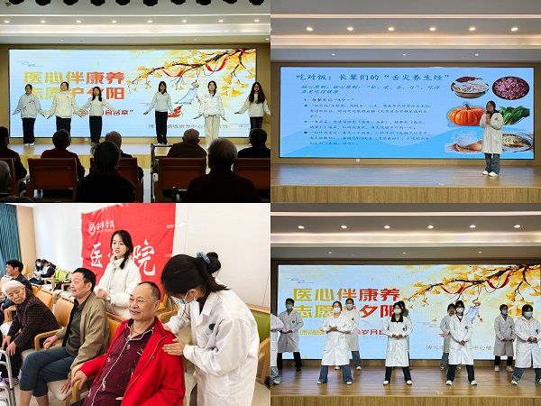 活动分为四个环节。活动环节一:文艺表演。舞蹈《桃花朵朵开》、《爱你》,轻快节奏瞬间活跃了现场氛围;朗诵《心怀感恩·志启新程》,以真挚情感打动了在场老人;手势舞《拍拍操》,邀请老人一同互动,现场笑声不断,洋溢着温馨热闹的氛围。活动环节二:志愿者们迅速切换至“专业服务模式”,由24级护理学1班的张程、张陇霞为老人进行健康宣教,结合老年群体特点,用通俗语言讲解了老年常见疾病预防、日常膳食搭配等知识。活动环节三:按摩推拿。志愿者们运用专业的按摩手法,为老人舒缓肩颈、腰背疲劳,陪老人聊起生活趣事与过往故事,温暖的交流让彼此的心贴得更近。活动环节四:八段锦表演。轻柔的乐曲中,志愿者们舒展肢体,每一个动作柔和流畅,老人们看得兴起,也跟着抬手、转腰,沉浸式感受传统养生功法的独特魅力,现场满是温馨。