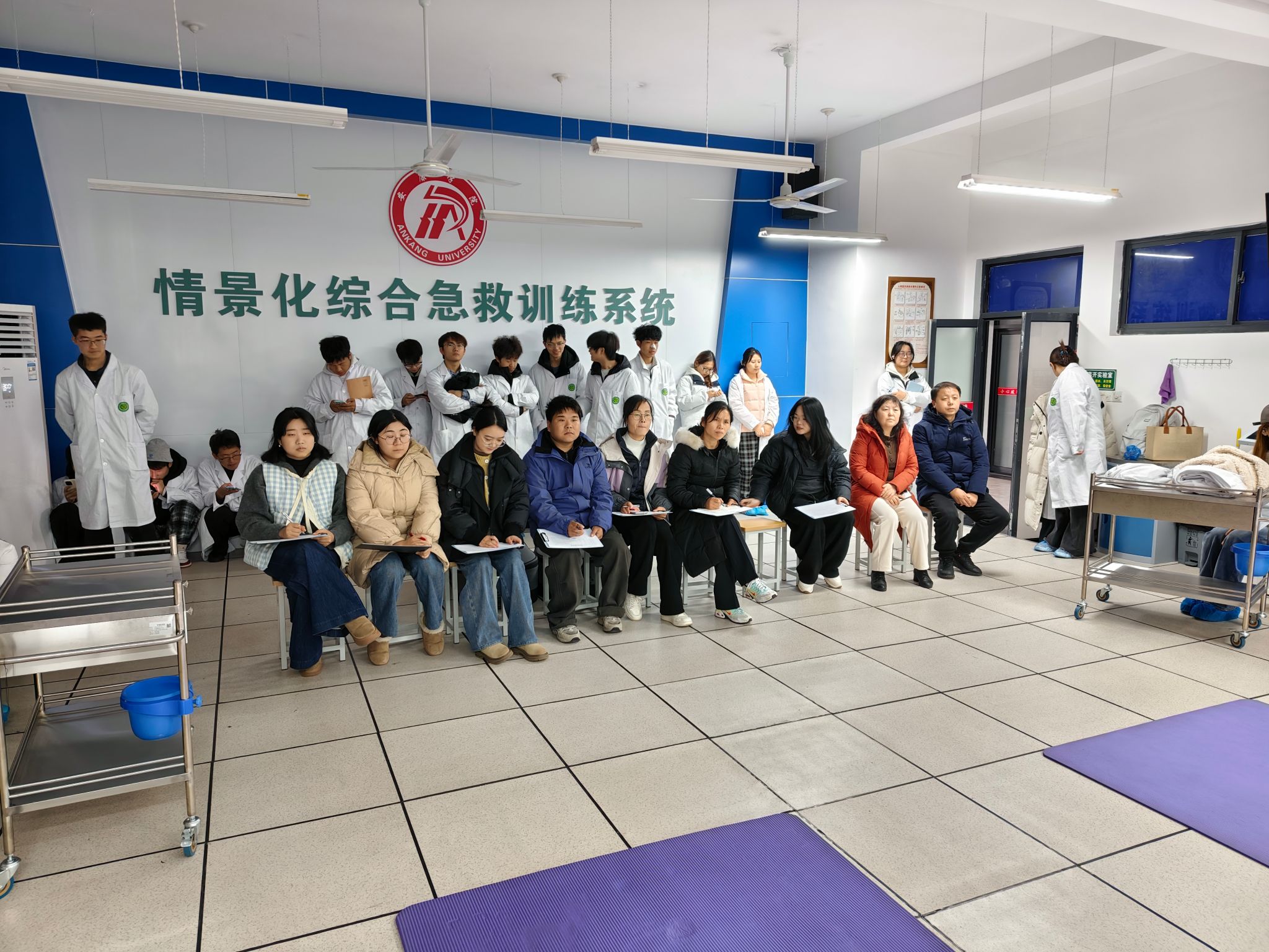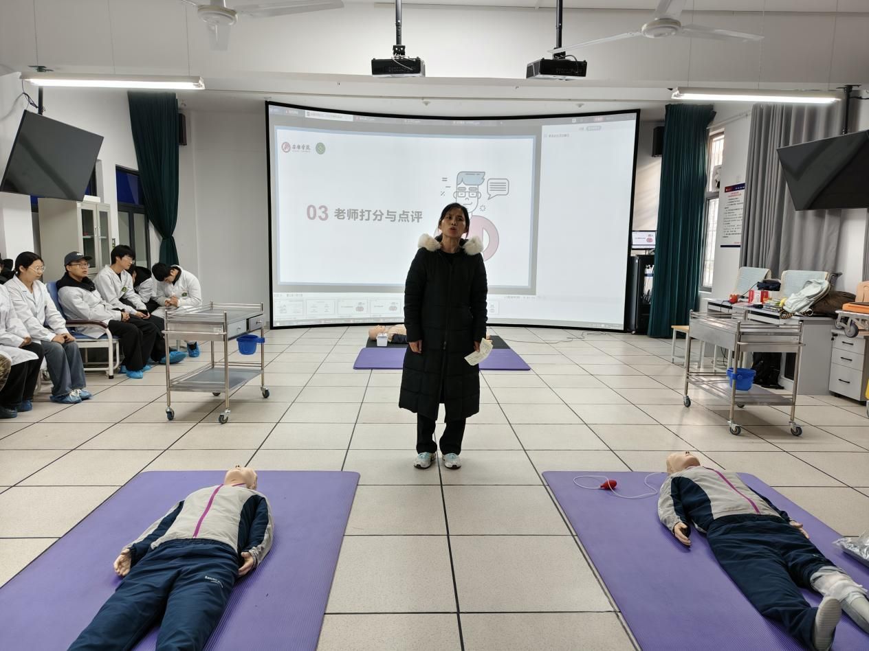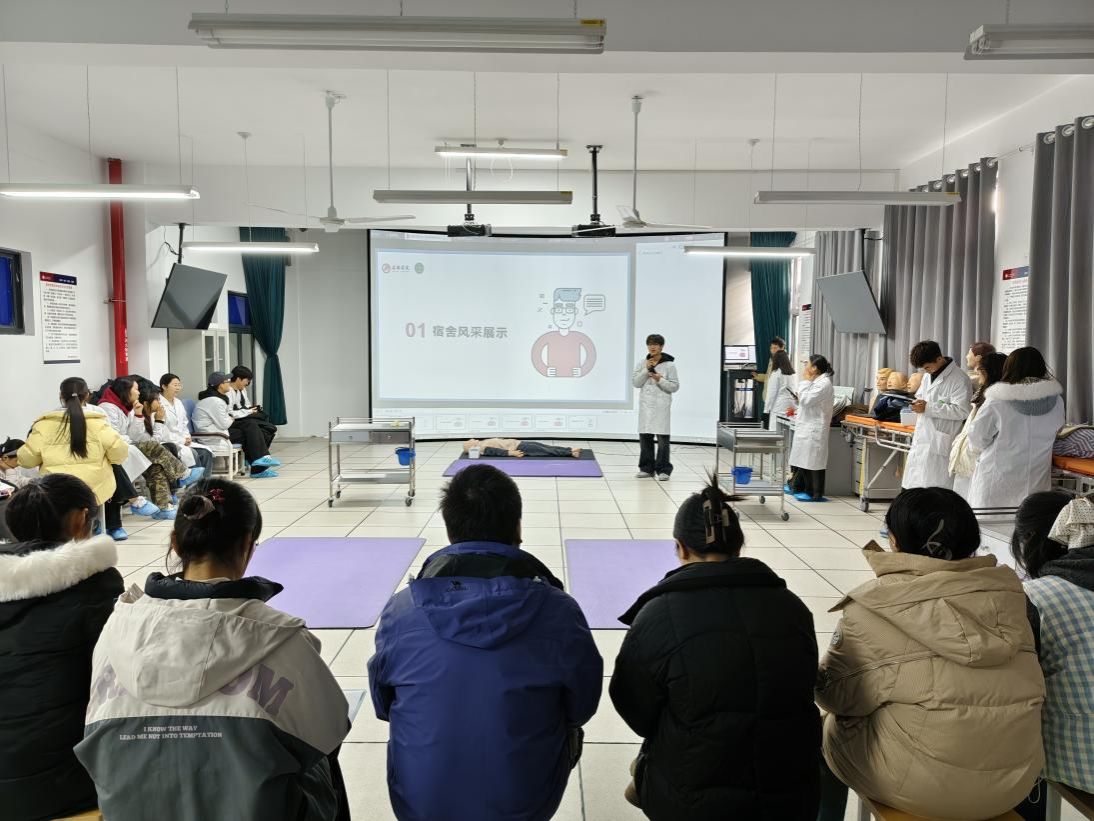 为强化员工宿舍安全意识,提升医员工急救实操能力,2025年12月25日,公司公寓文化节活动之宿舍急救技能大赛在公司急救实验室举办。经过初赛知识答题筛选,7个宿舍脱颖而出晋级现场比拼,护理系、实验室教师及新进博士组成专业评委团,党总支书记黄勇、经理谢娟平、学工办主任董弯、辅导员晁一雯,以及大一至大三所有宿舍舍长参与。