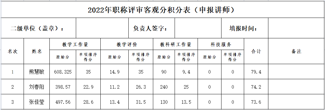 现将韦德1946体育官方入口2022年讲师职称评审客观分积分表予以公示,公示期为5天(2022年11月7日-11月11日),公示期间如有异议,请向韦德1946体育官方入口专业技术职务评审工作小组反映。电话号码:0915-3525938,0915-3260251。