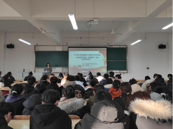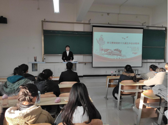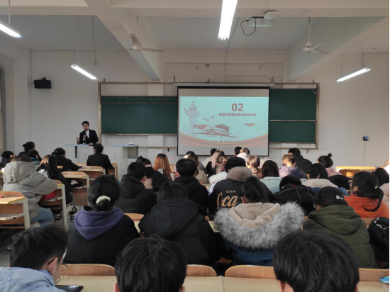 12月21日下午,由学工部、马克思主义公司主办,各二级公司承办的学习宣传贯彻党的十九届五中全会精神老员工“校园宣讲”活动(韦德1946体育官方入口分场)在江北校区1203教室开展。老员工宣讲团成员作宣讲报告。学工办副主任董弯主持,韦德1946体育官方入口19级入党积极分子和员工代表、20级全体新生参加。