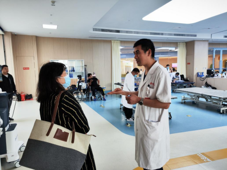 随后,公司谢娟平一行深入到各相关科室进行实地考察,到物理治疗科、儿童康复科、中医治疗科等现场勘查员工实习工作环境,就我院教学方面进行交流学习,同时对教学工作重点及难点,实践操作经验等方面进行了现场交流与沟通。
