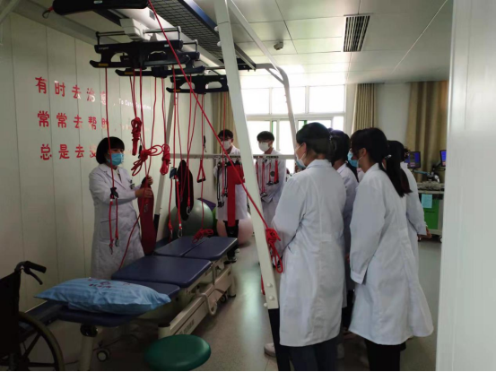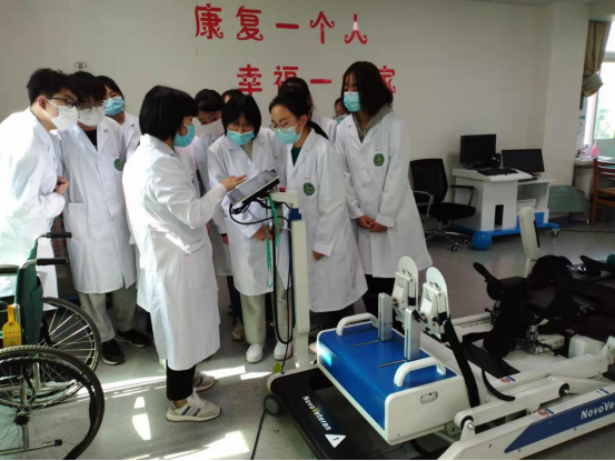 在康复大厅,张老师展示了许多先进康复设备的使用方法及注意事项,并嘱咐同学们在今后的学习和工作中一定要严格按照要求操作和使用各种仪器设备。同时还介绍本科室常见病种及治疗人群,张老师以脑卒中偏瘫患者为例,详细介绍了脑卒中患者的康复治疗方案和治疗措施。