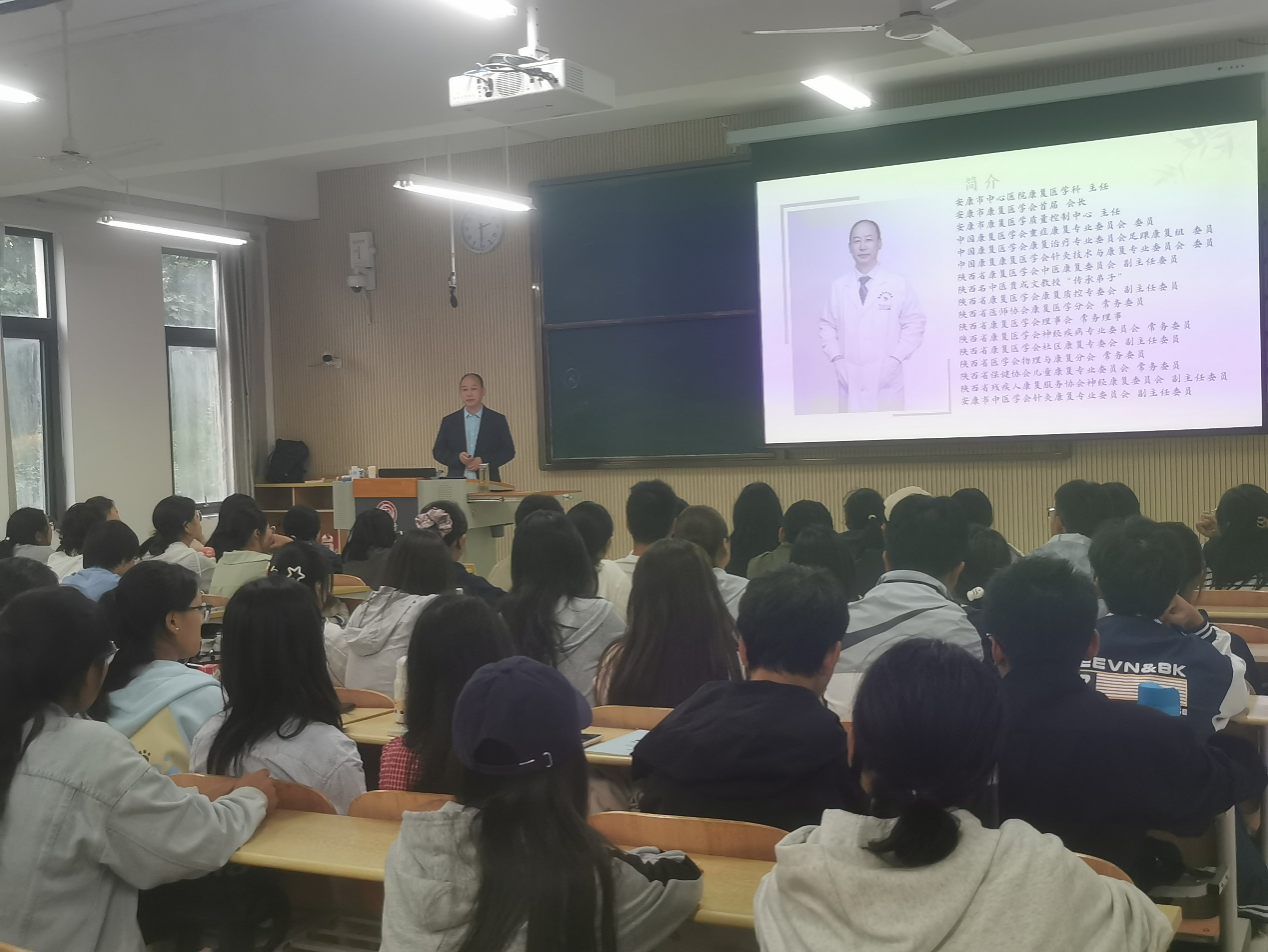 2025年9月18日,公司安康市中心医院康复医学科主任陈国旗副主任医师,为2025级康复治疗专业新生讲授专业认知讲座。陈主任结合自身丰富的学业和工作经历,为刚踏入大公司园的新生们揭开了康复治疗专业的神秘面纱。