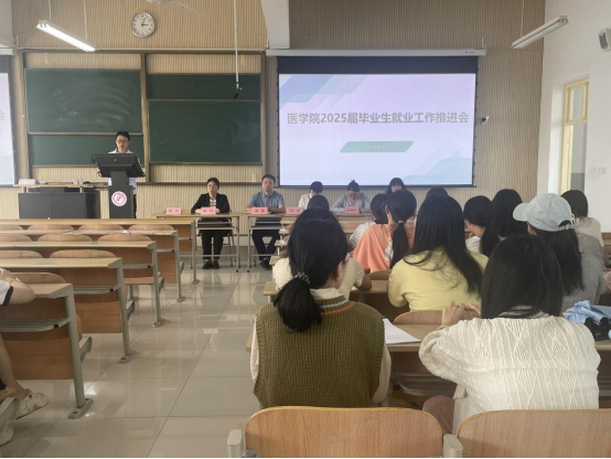 2025年4月28日下午3点在江北校区1304教室开展毕业生就业工作推进会,参加会议的有党总支书记黄勇、副经理陈佳、护理系主任白玉玲、康复治疗系主任陈玲、辅导员晁一雯以及未就业的毕业生,会议由毕业班辅导员桑杰主持。